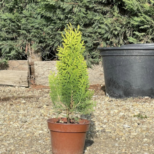 Известна като „Книгата“ или „Златната туя“, този сорт внася светлина и вертикален акцент.