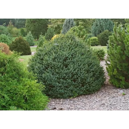 Визия: Има много фини, деликатни иглички и гъста, компактна структура. Цвета е свежо зелен, а формата – леко конусовидна до овална.