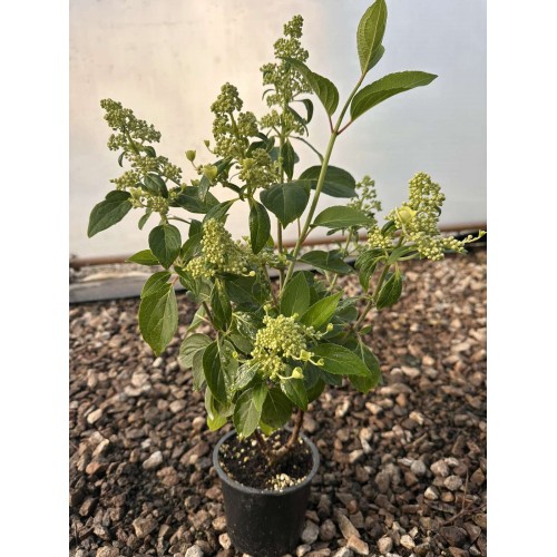 Hydrangea paniculata ‘Dharuma’ е уникален сорт, който се отличава от масивните и тежки хибриди със своята лекота и ранен старт. Произхождаща от Япония, тя носи в себе си типичния за източната естетика минимализъм. Докато другите хортензии тепърва формират пъпките си, ‘Dharuma’ вече е покрита с облак от малки, дантелени цветчета, които изпълват въздуха с деликатен аромат.