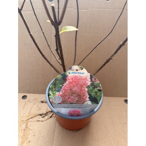Hydrangea paniculata ‘Sundae Fraise’® е носител на сребърен медал от престижното изложение Plantarium и е сортът, който доказва, че голямата красота може да дойде в малка опаковка. Тя е селектирана от Жан Рено във Франция с цел да предложи прочутата цветова трансформация на „Ваниловата ягода“, но върху храст, който запазва перфектна форма без да заема твърде много място.