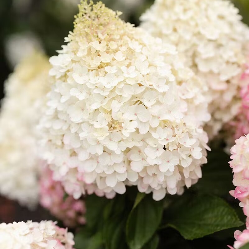 Hydrangea paniculata ‘Living Red Velvet’ е величествена и изразителна хортензия от серията Living Creations®, която впечатлява още от пръв поглед. Сортът съчетава силна структура с изключителен цъфтеж – неговите големи метличести съцветия започват сезона в кремаво-бяло и постепенно преминават в дълбоко наситено розово, създавайки ефектен контраст с лъскавите тъмнозелени листа.
