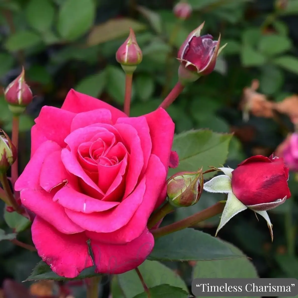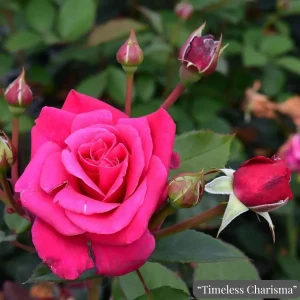 Тази роза решава вечния проблем на градинарите: избора между красив аромат и устойчивост на болести. ‘Timeless Charisma’ предлага и двете. Тя е изключително жизнена роза, която образува хармоничен храст с тъмнозелена, лъскава листна маса. Нейната способност да цъфти отново и отново гарантира, че винаги ще имате свежи, уханни цветове за украса на Вашия дом.